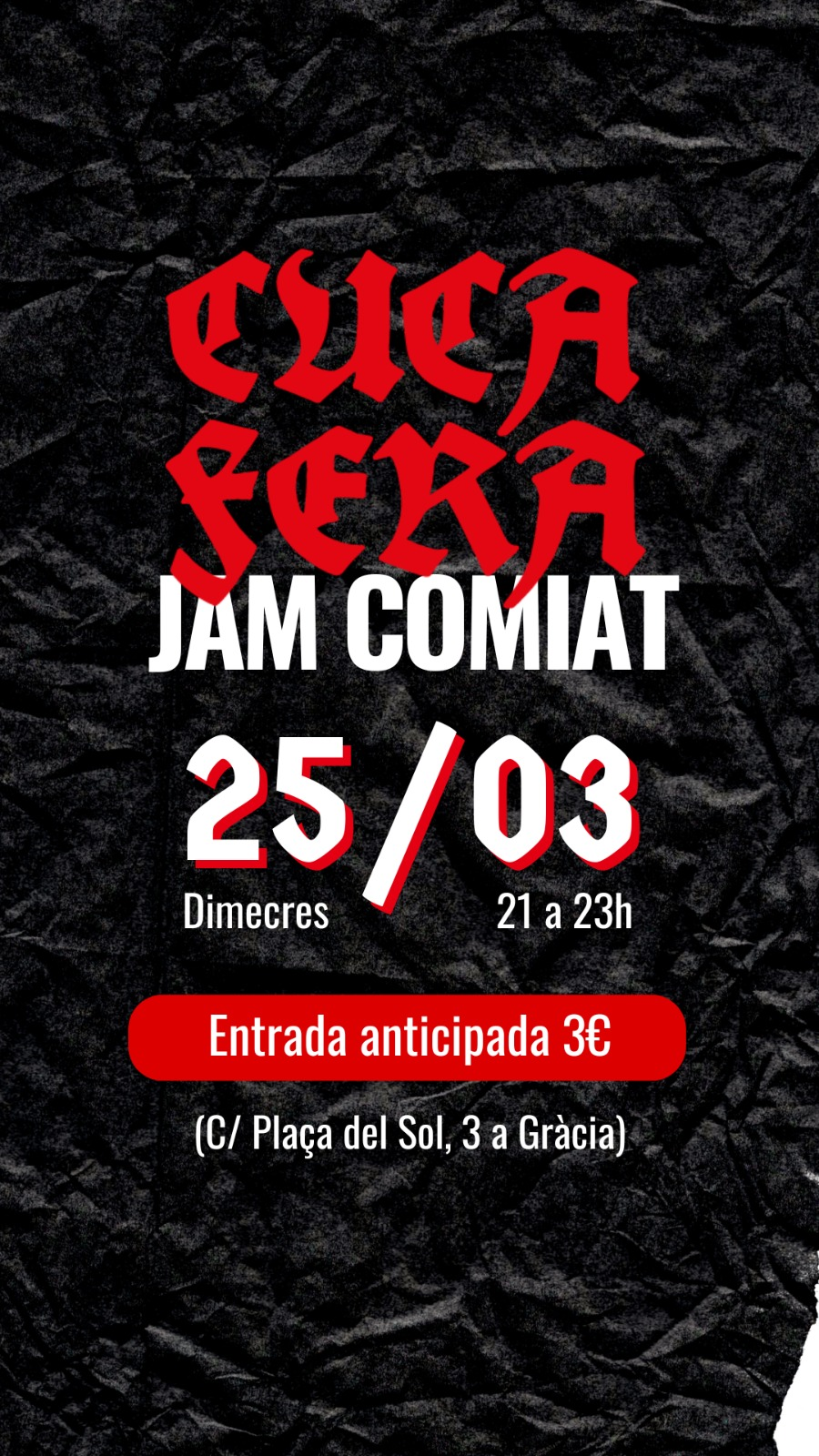 NO t'ho perdis!!!!!Entrada anticipada 3€. A taquilla 5€.